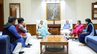 पूरे परिवार के साथ पीएम मोदी से भेंट की पूर्व मुख्यमंत्री वसुंधरा राजे ने