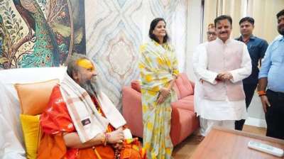 उप मुख्यमंत्री शुक्ल ने गोवर्धन में मलूकपीठाधीश्वर राजेन्द्रदास जी महाराज का लिया आशीर्वाद