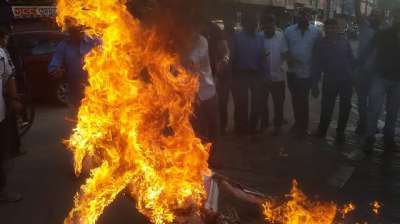 पहलगाम आतंकी हमले के विरोध में भोपाल में प्रदर्शन, आतंकवाद का पुतला दहन