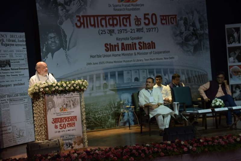 नई दिल्ली: भारत में आपातकाल की घोषणा के 50 वर्ष पूरे होने के गंभीर अवसर पर, डॉ. श्यामा प्रसाद मुखर्जी रिसर्च फाउंडेशन ने नई दिल्ली में एक स्मृति कार्यक्रम का आयोजन किया, जिसमें भारत के लोकतांत्रिक इतिहास के सबसे अंधकारमय अध्याय पर विचार किया गया. इस कार्यक्रम में मुख्य भाषण केंद्रीय गृह एवं सहकारिता मंत्री अमित शाह जी द्वारा दिया गया. आपातकाल को लोकतंत्र की आत्मा पर एक क्रूरतम प्रहार बताते हुए, शाह ने प्रस्ताव रखा कि 25 जून को प्रतिवर्ष “संविधान हत्या दिवस” के रूप में मनाया जाना चाहिए. एक ऐसा दिन जब संविधान के हनन और सत्तावाद के विरुद्ध डटे लाखों भारतीयों के साहस को याद किया जाए.