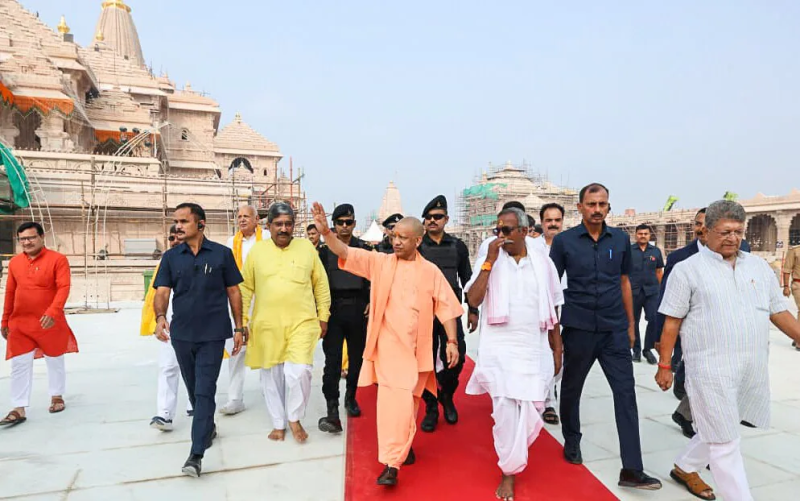 अयोध्या पहुंचे सीएम योगी, राम जन्मभूमि मंदिर में ध्वजारोहण तैयारी का लिया जायजा