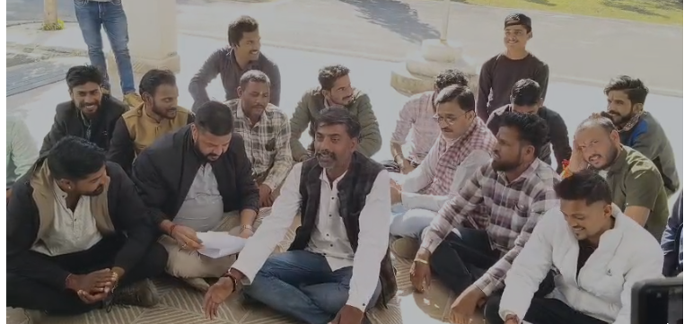 सागर में पुलिस की कार्यप्रणाली से नाराज करणी सैनिकों ने एसपी ऑफिस पर प्रदर्शन कर कीर्तन किया