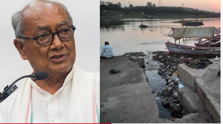 नर्मदा में गंदा पानी मिलने पर सियासत गरमाई, दिग्विजय सिंह का जबलपुर महापौर पर हमला