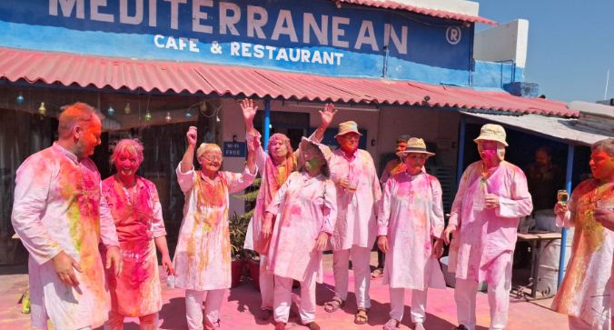 विदेशी पर्यटकों ने खजूराहों में खेली होली