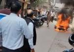 जिला न्यायालय के पास चलती बाइक बनी आग का गोला, मचा हड़कंप