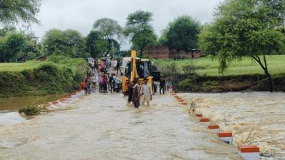 जेसीबी की बकेट से गर्भवती को कराया बहता नाला पार, दूसरी ओर खड़ी थी एम्बुलेंस