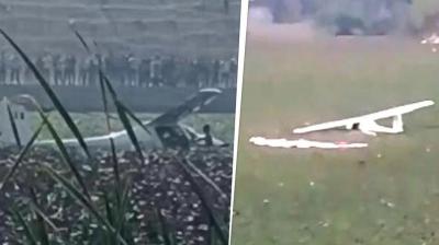 ट्रेनी विमान क्रैश, तालाब में गिरा