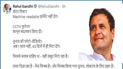 लोकसभा में नेता प्रतिपक्ष और कांग्रेस सांसद राहुल गांधी ने शनिवार को चुनाव आयोग के एक नए फैसले पर तीखा सवाल उठाया है। राहुल गांधी ने कहा कि जब चुनाव...