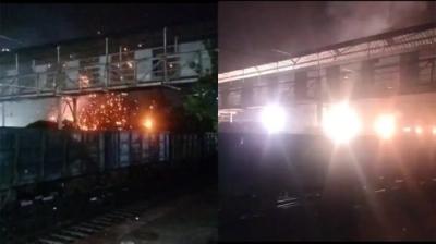 मालगाड़ी में ओवरलोड कोयला बिजली के तार से टकराया, जमकर हुए धमाके