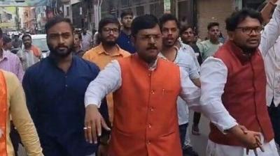 अवैध बूचड़खानों के खिलाफ हिंदू संगठन का निगम घेराव, पुलिस रोकने पर हनुमान चालीसा पाठ