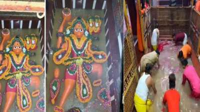 तीसरी बार अमृत स्नान: मां गंगा ने श्री बड़े हनुमान जी को स्नान कराया, बाढ़ का संकट गहराया