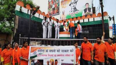छत्तीसगढ़ में बी.एड शिक्षकों का अनोखा प्रदर्शन, कुछ लोग भारत माता-भगत सिंह, तो कुछ राजगुरु-सुखदेव बनकर निकले