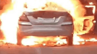 चलती कार में लगी भीषण आग, पिता-पुत्र ने कूद कर बचाई जान
