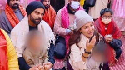 आध्यात्मिक रंग में रंगे विराट-अनुष्का, वृंदावन में किया दर्शन-पूजन